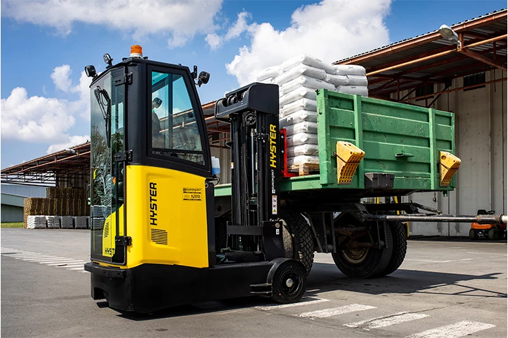 Right size your fleet with a flexible Hyster® Outdoor Reach Truck. Retrieve pallets indoors and then load them into lorries outside, or efficiently unload lorries with varying floor conditions, before putting the pallets away in the warehouse – all with the same truck.