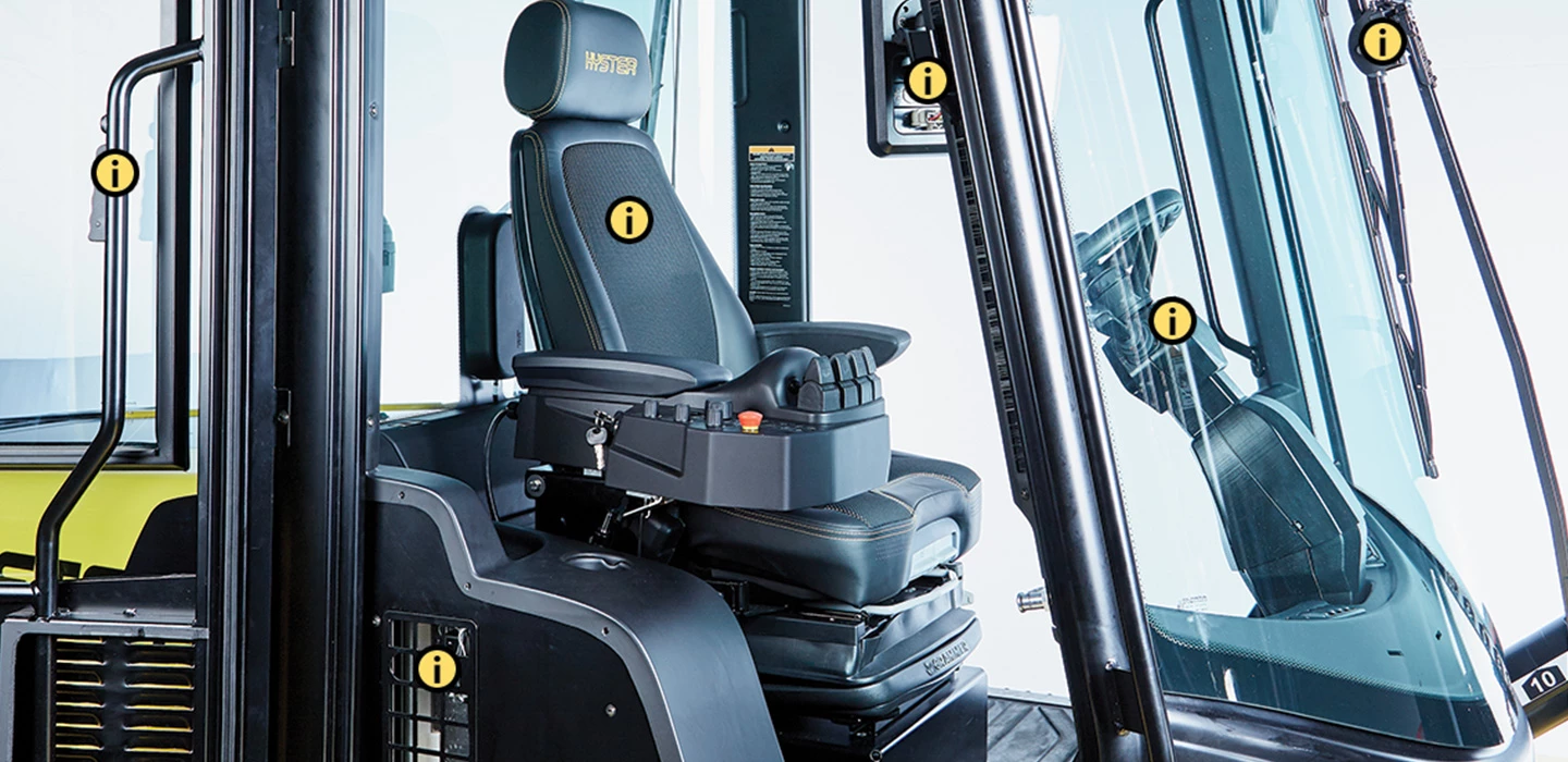 No matter the load or operating conditions, you need your operators to perform at the highest level to meet productivity goals and protect margins. The next generation of Hyster® Operator Cabins for the Big Truck range is packed with ergonomic, productivity-enhancing features in an efficient, cockpit-style design that positions all truck information and controls within easy reach.