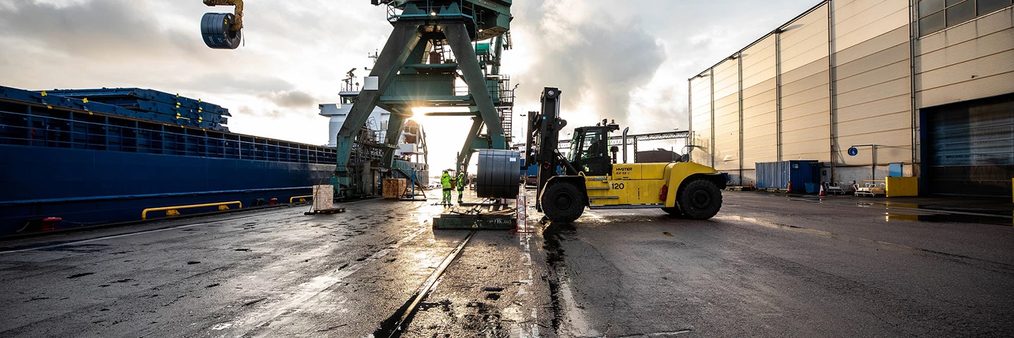 КРЕПКИЕ ПОГРУЗЧИКИ HYSTER® ДЛЯ ПЕРЕВАЛКИ РУЛОНОВ И ЛИСТОВОГО МЕТАЛЛА В ШВЕДСКОМ ПОРТУ ОКСЕЛОЗУНД